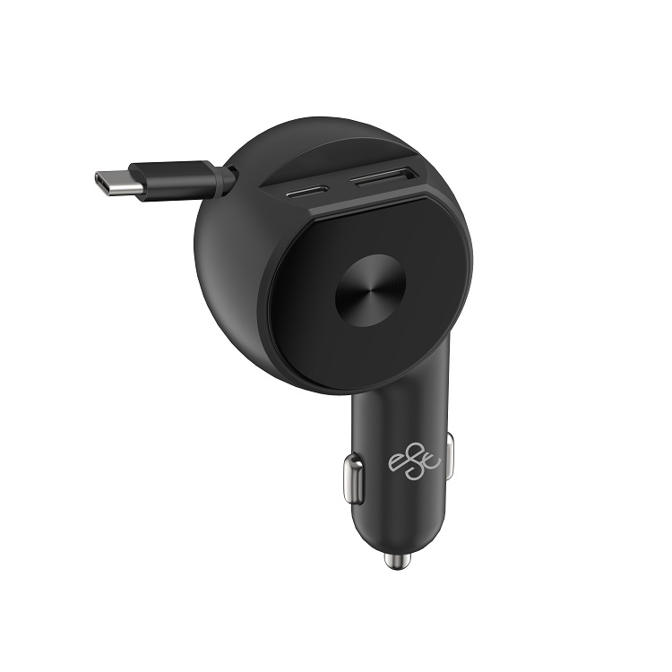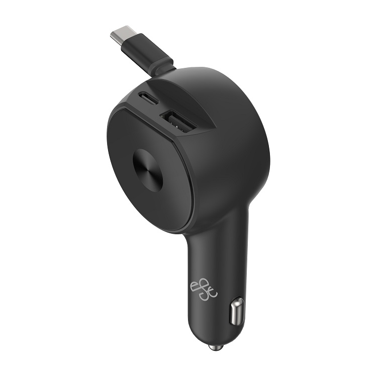 30W Car Charger with Retractable Cable