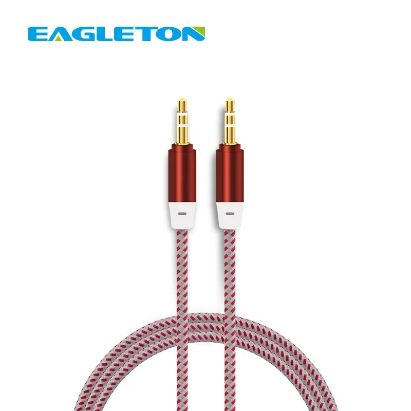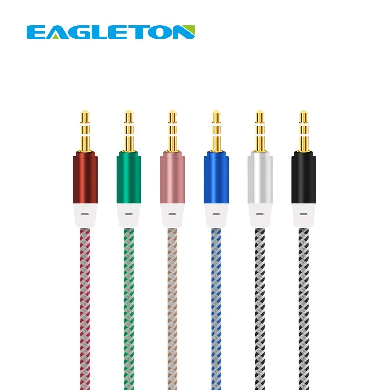 Wholesale Gold Plated Connector Metal Head Nylon Braided 1m Car Aux Cable 3.5mm Audio Video Cable for MP3 Headphones